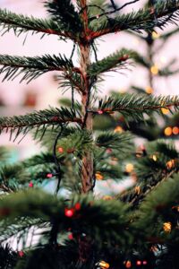 We all got excited as she grabbed her keys and my older brother, David, and left in the family station wagon. They were gone for well over an hour. I expected to see a green cone-shaped object netted and tied to the top of the car. But what I saw looked more like a helicopter with wood sides and evergreen propellers. The trunk was no more than 18 inches tall, but what this ‘tree’ lacked in height, she made up in girth. It filled the driveway.