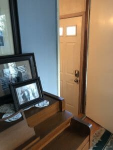 The man was still where I left him. He smiled as he received the bag. I asked him if he would like something warm to wear. He said he would. I asked him what size coat he wore. “42L,” he said. That was my size. He seemed much larger. I went past the family gathering once again to get to the hallway coat closet.